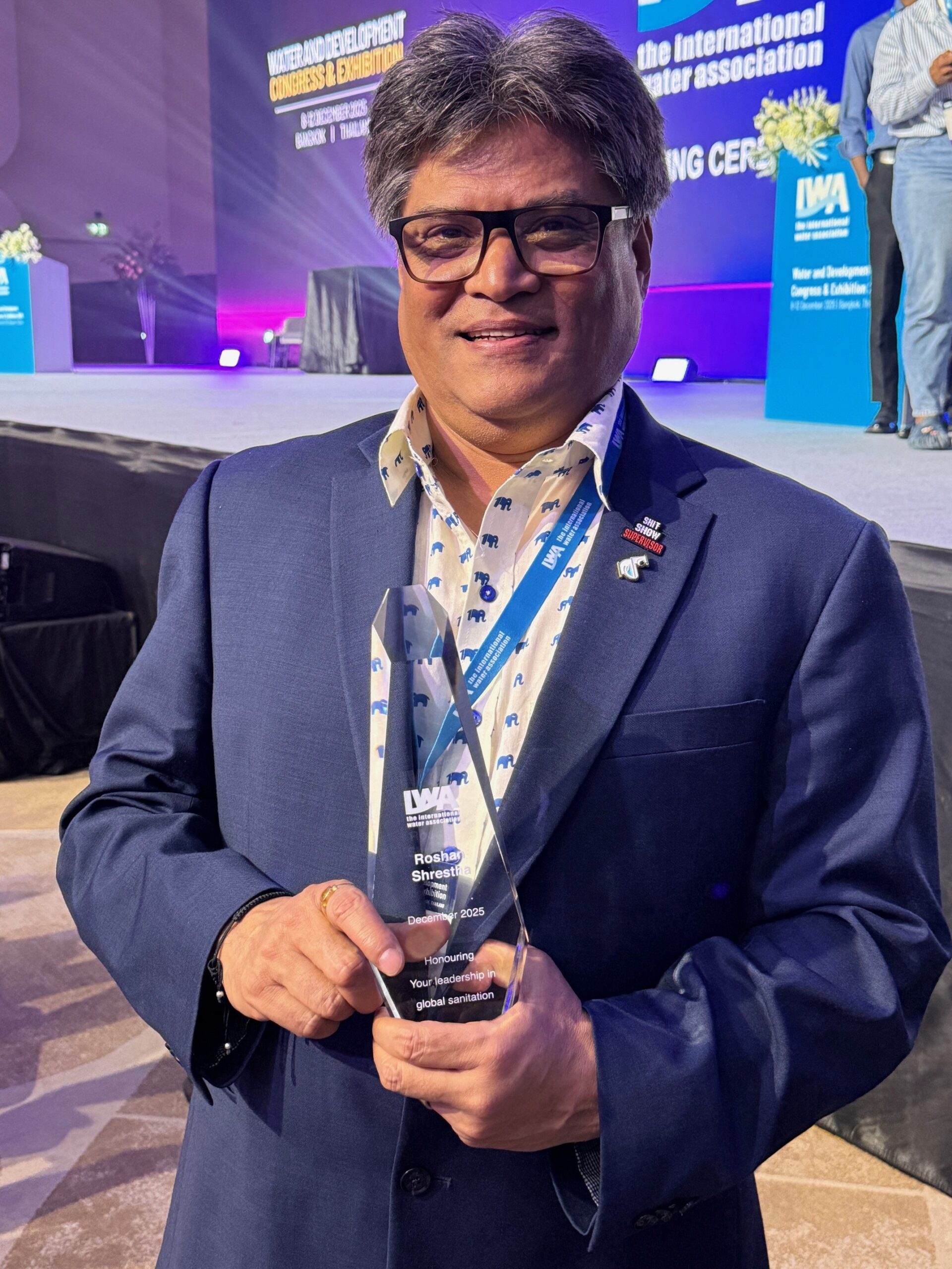Herewith we share an extract of Dr. Roshan’s reflection he posted recently on Linkedin: “After 37 incredible years in the WASH sector, filled with purpose, partnership, and profound lessons, I find myself at a moment of deep reflection and gratitude. I was profoundly honored to receive the Global Sanitation Leader Award from the International Water Association (IWA) at the Water and Development Congress, December 2025. This recognition is not just mine – it belongs to every colleague, community members, partners, and believers in the mission of ensuring safe and sustainable water, sanitation, and hygiene for all. Thank you, IWA, for this humbling acknowledgment. It has reinforced my belief that our collective work truly changes lives.”