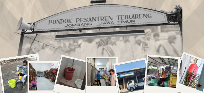 Tebuireng Central Islamic Boarding School, one of the largest in East Java, plays a significant role in social development and environmental improvement. However, challenges such as suboptimal clean water supply and inadequate sanitation persist. Although the boys’ dormitory has a wastewater treatment plant (WWTP), regular effluent testing and maintenance are absent, while the girls’ dormitory lacks a WWTP, discharging wastewater directly into a river. Additionally, despite the establishment of Bank Sampah Tebuireng (BST) to promote waste sorting and recycling, individual awareness remains low. Furthermore, the drainage system is poorly maintained. This study aims to evaluate these issues. Research methods employed include field observations, laboratory tests on drinking water and domestic wastewater quality, and questionnaires administered to administrators and members of the boarding school. Questionnaires were designed to gather data on environmental awareness regarding clean water, wastewater, waste management, and drainage. The evaluation of clean water supply and sanitation facilities was based on three aspects: technical, financial, and community involvement. The findings reveal that the management of clean water supply and sanitation facilities at Tebuireng Central Islamic Boarding School does not meet the standards. This is evident from the results of well water quality tests, which showed that Total Dissolved Solids (TDS) and Total Coliform levels exceeded the standard limits, with TDS measuring 477 mg/L and Total Coliform at 12 MPN/100 mL. Wastewater management also falls short of standards in terms of both quantity and quality. In the boys’ dormitory, effluent quality does not meet the standard limits, with high levels of BOD (57.2 mg/L), COD (103.7 mg/L), TSS (46.7 mg/L), and Total Coliform (2,320,000 CFU/100 mL). The failure to meet effluent standards can be attributed to a lack of WWTP maintenance, overload, non-compliance with technical requirements, and negligence in operational procedures. Preventive maintenance is necessary to achieve effluent quality that meets the standards. Waste management at the boarding school is carried out at TWB, where waste is sorted into two categories based on predetermined criteria and has commercial value. It is planned to provide sorted waste bins in all areas of the boarding school to encourage individuals to dispose of waste according to the correct category, thereby increasing awareness of the importance of waste sorting. The drainage system in the boarding school area is clogged with dirt and sediment, requiring regular cleaning. The support of the boarding school community is needed to raise awareness of the importance of environmental management and improve quality of life.