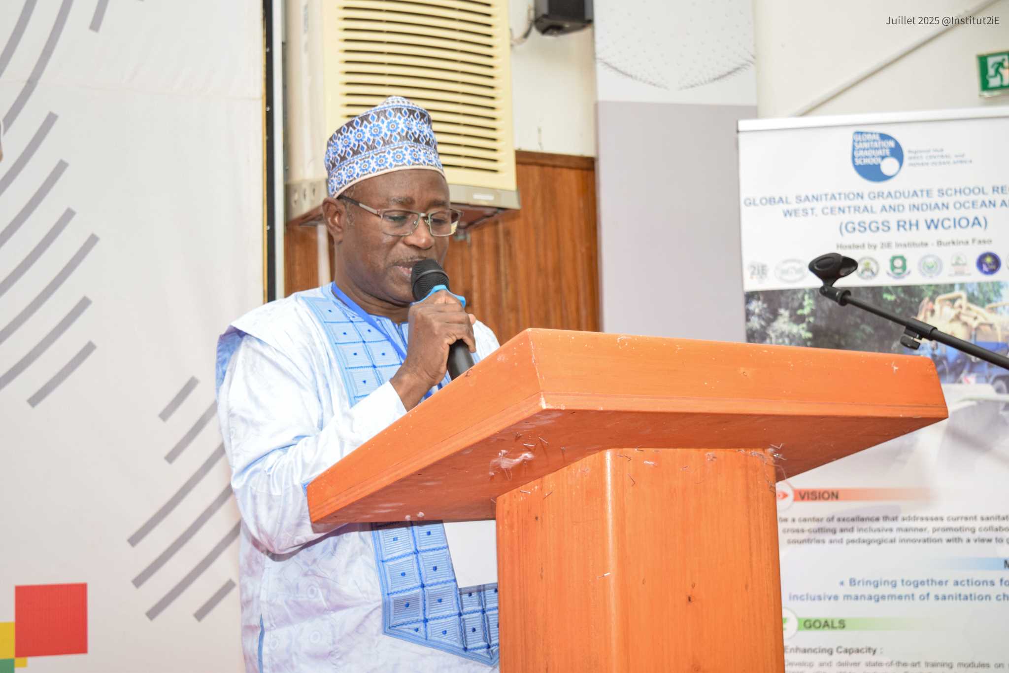 The ceremony was presided over by Professor Hamma Yacouba, Secretary-General of 2iE. It gathered an exceptional array of partners, including leading academic representatives, sanitation sector experts, GSGS program Alumni, as well as international cooperation agencies and essential public institutions. The GSGS RH WCIOA, coordinated by the 2iE Institute, is an international platform dedicated to capacity building, research, and applied studies in the field of sanitation.Its mission is clear: to train highly skilled professionals capable of designing and implementing cross-cutting solutions to complex sanitation challenges.
